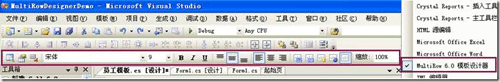 注意:在集成的运行模式下,由于VisualStudio环境的限制,所以可能有极少数的功能被禁用了而不起作用。所以最终的表现要以运行起来以后加载在Form上的MultiRow为准。