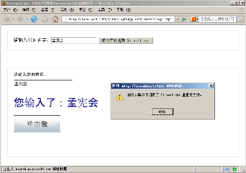 "你从js脚本中调用了 Silverlight 里面的方法。";