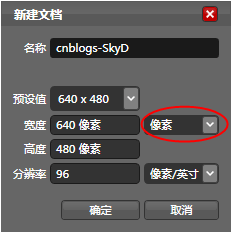 打开Microsoft Expression Design 2中文版,点击菜单“文件 > 新建”,依照下图进行设置,这里将文档尺寸单位设为“像素”,便于与应用程序的布局单位相对应。