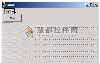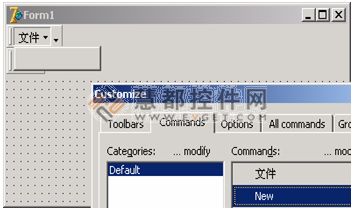 Type不用变,Caption设置为New。确定后,New出现在Commands中。还是选中New,将其拖放到Form上的MenuBar的File中。当拖至File时,File自动弹开,将New放置到弹开的空白处即可。其结果如右图。
