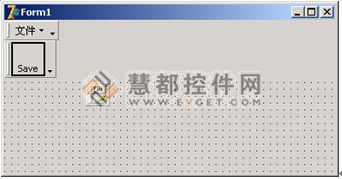 但是,它并没有加入到Form上。用鼠标左键点中上图中的“文件”,按住不放,将其拖放到Form1的MenuBar中:(在拖动的过程中,鼠标的形状为一个小矩形右下角一个x,当移动到能够放置的位置时x变成+表示能够加入)