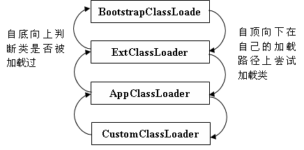 BootStrapClassLoader 处于类加载器层次结构的最高层,负责 sun.boot.class.path 路径下类的加载,默认为 jre/lib 目录下的核心 API 或 -Xbootclasspath 选项指定的 jar 包。ExtClassLoader 的加载路径为 java.ext.dirs,默认为 jre/lib/ext 目录或者 -Djava.ext.dirs 指定目录下的 jar 包加载。AppClassLoader 的加载路径为 java.class.path,默认为环境变量 CLASSPATH 中设定的值。也可以通过 -classpath 选型进行指定。用户自定义 ClassLoader 可以根据用户的需要定制自己的类加载过程,在运行期进行指定类的动态实时加载。