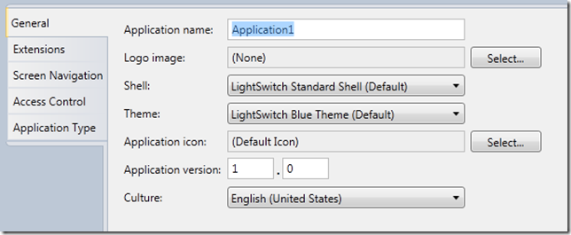 Extension,可以添加、选择不同的扩展包,实际上给开发人员提供扩展LightSwitch默认构建的地方,你可以把自己开发LoB的一些构建设想编写为LightSwitch扩展,让大家来使用。(此处纯属猜想)
