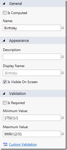 这个过程也可以看作是实体框架中映射一个表的操作(背后实际上就是在用EF进行映射),Required是不能修改的,数据验证时候也不能修改,其他如字段名称,显示名称都可以修改,这样的要求估计也是EF的映射所要求的。
