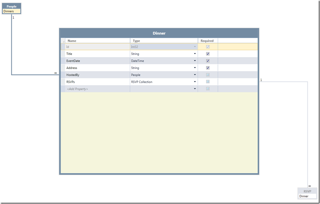 接着,我们再来添加两个表Dinner和RSVP,如下图:
