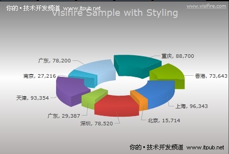 Visifire 是一个基于SilverLight的Chart组件,VISIFire 公司提供了 Open Source 的 Silverlight Chart 组件,遵循GPL v3,可以在 ASP, ASP.Net, PHP, JSP, CodeFusion, Ruby on Rails 以及 HTML 中使用。支持的Chart类型挺多的(支持饼图,柱状图,圈图,区图等等)。