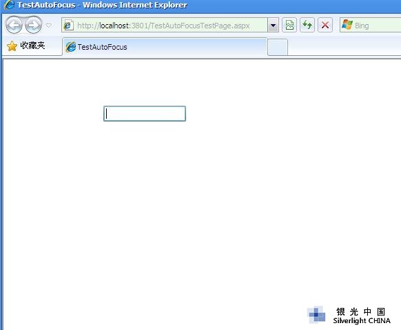 好了这样我们就发现成功聚焦了,结论是:要想聚焦到silverlight中的控件一定要先聚焦到silverlight这个插件上,我们可以通过鼠标点击到silverlight上使其聚焦.但当我们一开始没有点击就想使其中的控件获得焦点可能就要用到我这个方法了.希望能给大家帮助.