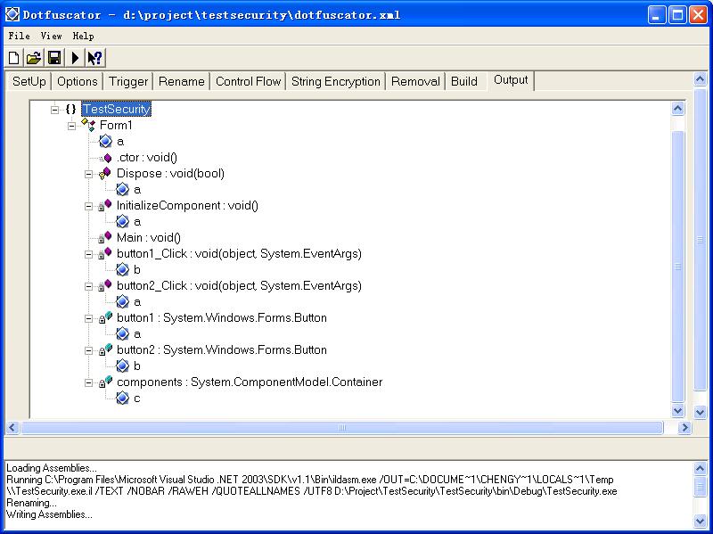 对一个或者多个.NET组件进行混淆的过程可以保存成为一个工程,工程文件就是一个XML文档,里面包含了设置的转换规则。