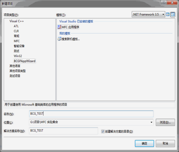 下面开始利用向导生成BCG工程,此试验在VS2008SP1通过。如下图所示: