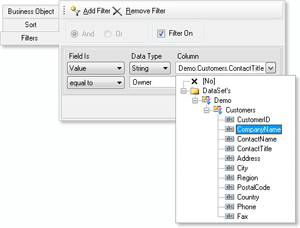 本次版本发布以后,可在业务对象中实现排序和过滤。通过使用数据带(Data band)中标准的编辑对话框,你可以设置排序和过滤功能。