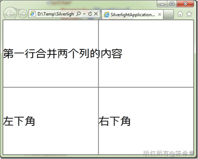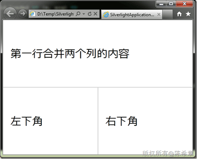 看起来不错对吧?先不要着急,看看另外一个情况,加入我们希望把第一行的两列进行合并(ColumnSpan)的话,会怎么样呢?