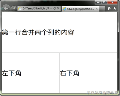 Text="第一行合并两个列的内容" Grid.ColumnSpan="2"></TextBlock>