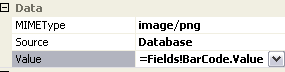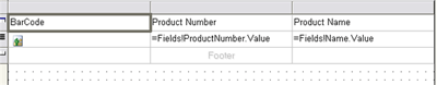 将“Data Source” 窗口中的“ProductNumber” 和“ProductName” 列分别拖到表中。对于“BarCode”一列,从工具箱中拖动“image”到“BarCode”列。