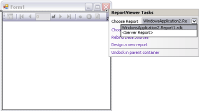然后,打开Windows窗体,将“ReportViewer”控件从工具箱中拖动到Windows窗体。将“Choose Report”添加到刚才创建的rdlc报表。