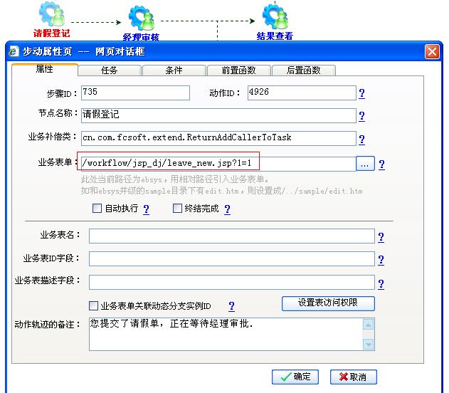 在流程实例运行时,执行到此节点,既打开挂接的jsp表单。