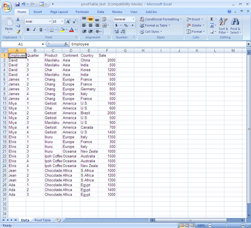 1、使用Cell对象的PutValue/setValue方法添加数据到工作表单元格中。你也可以使用已填充了数据的现有模版文件。这些数据将被用作数据透视表的数据源。