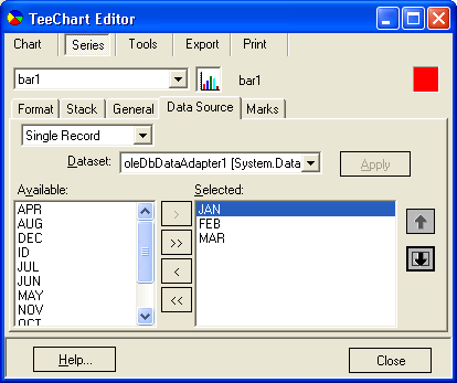 Single Record Charting允许显示关联在TeeChart上单一数据库的全部或部分记录。它可能对数据库视图或表是非常有用的,例如,每年的销售数字是作为一个单独月的列来存储的,如'JAN','FEB','MAR'等,并通过记录显示连续多年的每月销售额。