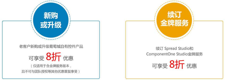 葡萄城“2016年暖冬特惠”活动正式开启,本次活动为新老客户提供了“团队授权赠培训”、“控件套包年度最惠”、“老客户新购续订8折”等诸多优惠。活动期间为2016年11月15日~2016年12月31日。