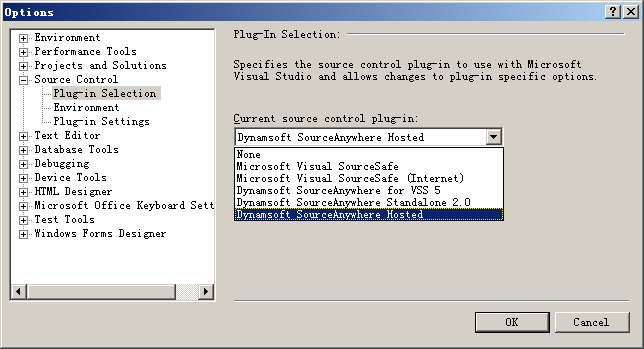 在“当前源代码管理插件”组合框中选择“Dynamsoft SourceAnywhere Hosted”,如下图所示: