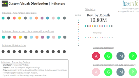 Inservit的“Distribution视觉效果”允许您查看视觉效果中每个字段类别的指示符,这与视觉效果的图例非常相似。您可以使用这些指标来过滤报告。指标具有很多格式选项,包括: