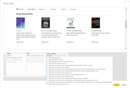 在下图的示例中,我们利用该新功能从Power Query资源页面中提取有关Power Query书籍的信息(包括作者、标题和URL)。