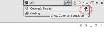 而且,如果您想知道命令所在的位置,则可以使用命令搜索将鼠标引导到命令的位置,并使用不容错过的大红色箭头指向它。为此,您要做的就是单击命令旁边的眼镜,以一劳永逸地查看它的位置。