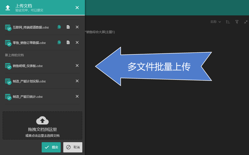 通过上传和下载功能,可以非常方便地将报表、仪表板和数据集等文档迁移到其他服务器中,以实现从测试环境到正式环境的发布需要。