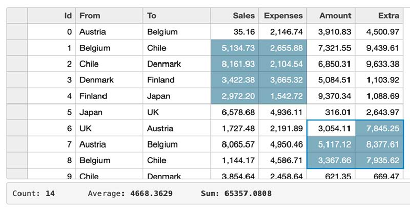 本次新增的功能是通过一个名为MultiRange的新SelectionMode来实现的,用户通过添加一个selectedRanges属性,即可获取包含CellRange对象的数组,该对象包含当前选定的范围。