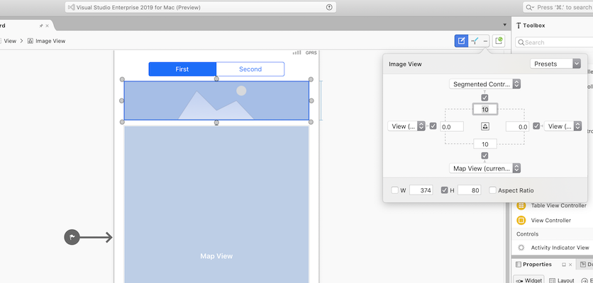 Xamarin Designer for iOS引入了一种处理约束的新方法。选择可约束视图后,此时工具栏中的“约束固定模式”选取器选择器旁将显示省略号。单击省略号可显示用于编辑所选视图约束的弹出框: