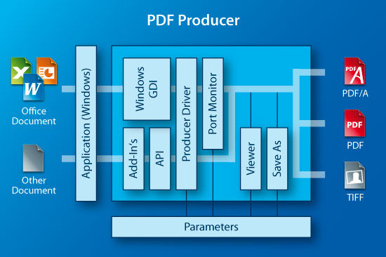 The 3-Heights™ PDF Producer is more than just a printer driver that generates PDF documents quickly and synchronously. It can create PDF in parallel and offers client and server-side PDF creation, an API for integrating into applications, and the option of creating 100% PDF/A compliant documents.
