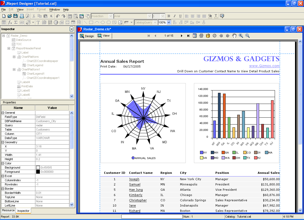JReport Designer empowers developers with the ability to quickly build reports that efficiently deliver information to end users via any Web browser.