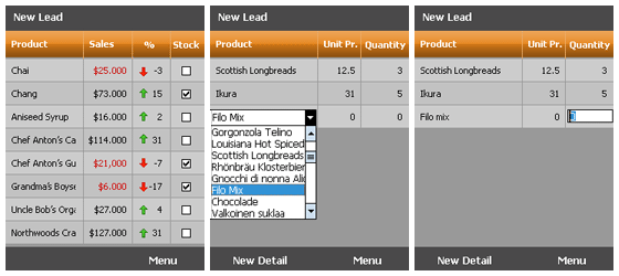 Resco控件包括用于显示和编辑存储在列表或图表中的自定义数据的高级组件。可以在其中使用用于显示数据的行或单元格的自定义模板。 |