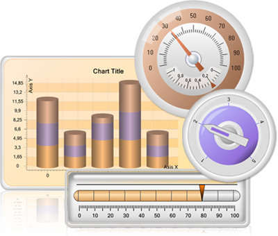 SharpShooter Gauges included in the package features a rich set of 180+ pre-built gauges: Meters, Dials, Sliders, Switches, Digital numbers and text, Odometers and other common and non-standard controls. You can easily adjust existing gauges to your requirements, or create a new one from scratch if none of the pre-designed gauges suits you. End user designer is provided.