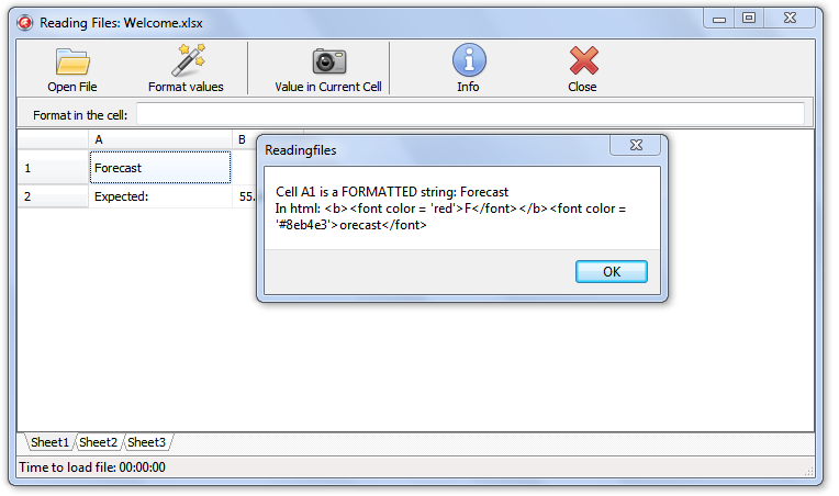 用Flexcel的 "Reading Files"读取XLSX文件,将单元内容用HTML显示: