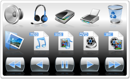 Ribbon Bar Icons - Multimedia Edition, designed by Perpetuum Soft LLC specifically for MultiMedia Soft customers, introduces a splendid icon collection designed for multimedia applications and websites. This icon set will help you design intuitive and attractive user interface and enhance usability of your software. The icons are carefully drawn in a Vista-like manner, which makes your project look up-to-date. They can also be used in standard toolbars. Richly colored images compose the basic icons which are used in many programs.