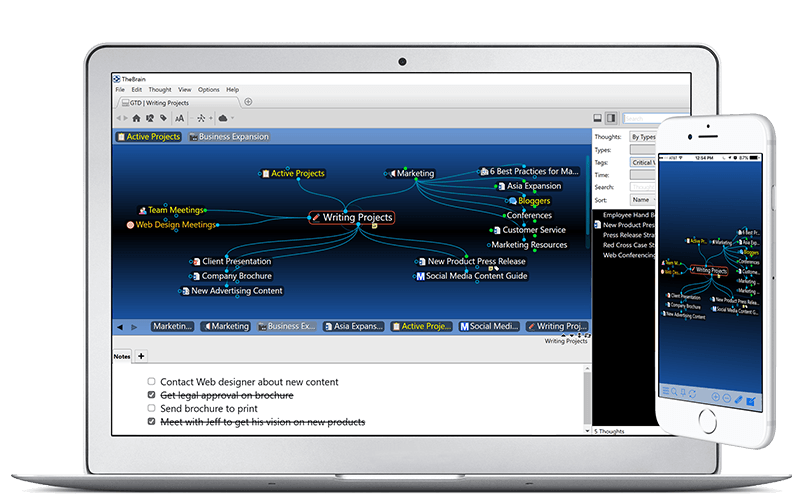 TheBrain可让您将您的思想数字化,这样您就可以真正看到您的想法并完善您的想法。您的每个 Thought 都通过与其他相关 Thought 的联系在屏幕上栩栩如生,为思考和行动创造了一个环境。