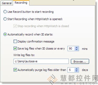 HttpWatch can be configured to automatically record and save log files with no manual intervention or programming. Log files are written out to a specified directory at regular intervals or when the browser closes: