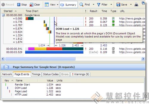 HttpWatch能够显示浏览器事件计时与网络级HTTP瀑布图表。比如Render Start和Page Load等计时都是用来确定页面内容开始显示页面似乎完成了的有用的指标。