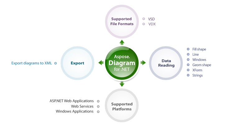 Platform Independence Aspose.Diagram for .NET supports the .NET framework. |