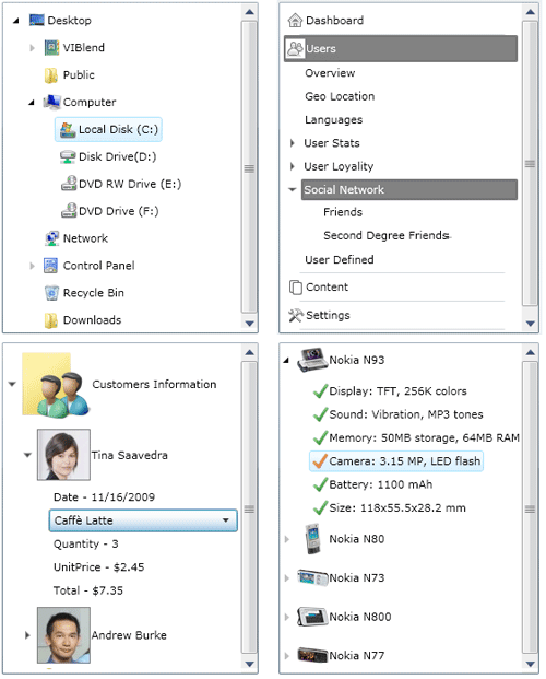 VIBlend TreeView Control for Silverlight offers outstanding hierarchical data visualization capabilities. It's easy to use, and unlike other Silverlight TreeView controls it offers almost any feature you may need in a TreeView.